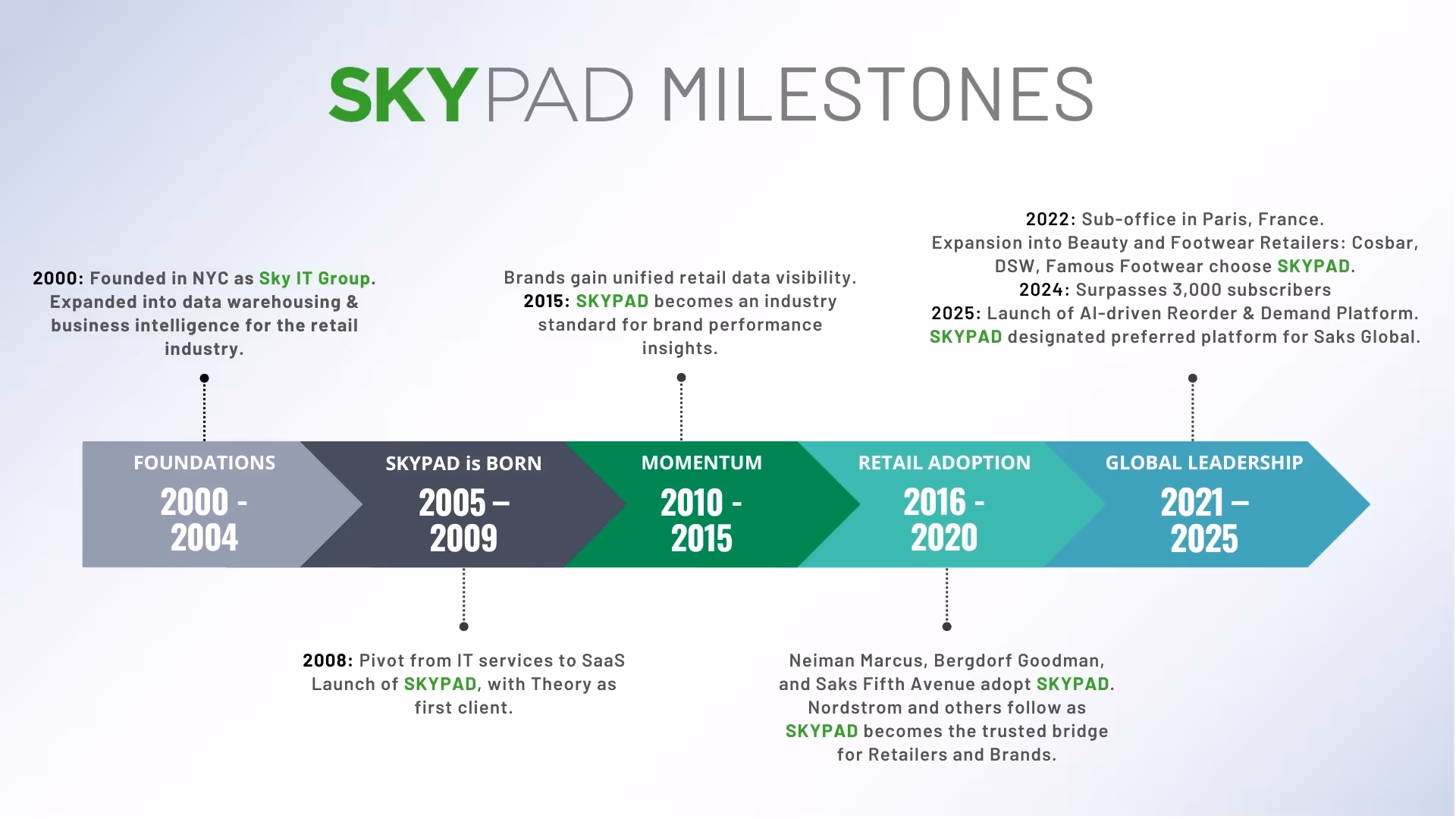 Celebrate 25 years of innovation, partnership, and growth with Sky IT Group and SKYPAD. This special anniversary page invites you to explore our journey, from milestone achievements that shaped our industry leadership to heartfelt wishes from the customers who helped us get here. Enjoy a curated gallery of anniversary moments, discover stories of collaboration through video testimonials, and share in the excitement with our interactive digital eCard. Step inside and experience the legacy we built together and the future we are shaping next.